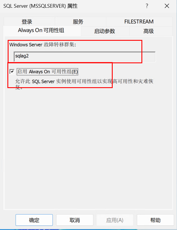 - 要启用这个特性一定是在节点上配置好了故障转移集群,否则上述对话框里不会显示任何的故障转移集群名字。
