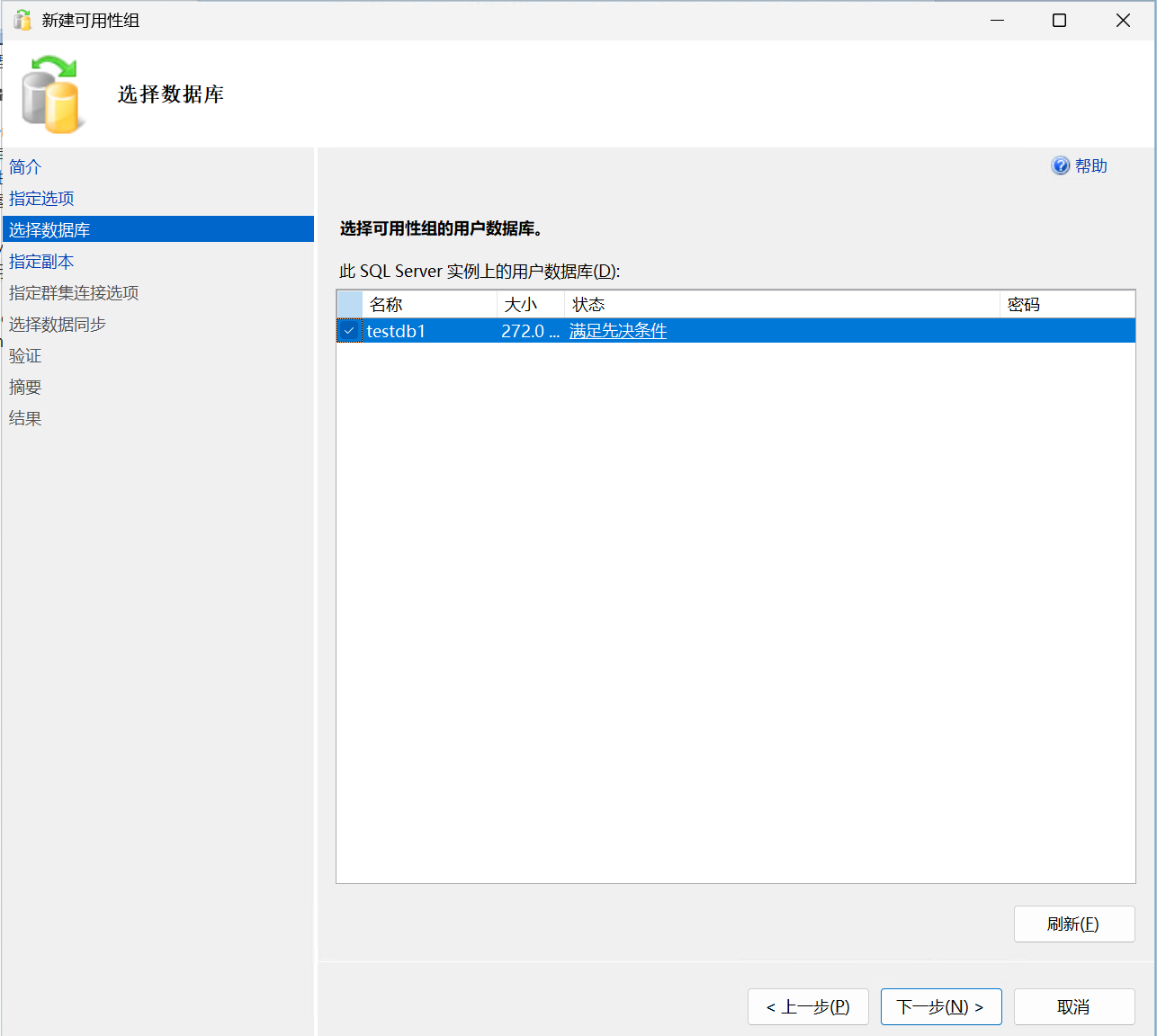 继续下一步选择符合条件的数据库,因为我们之前已经准备好了数据库,因此这里可以直接选择:
