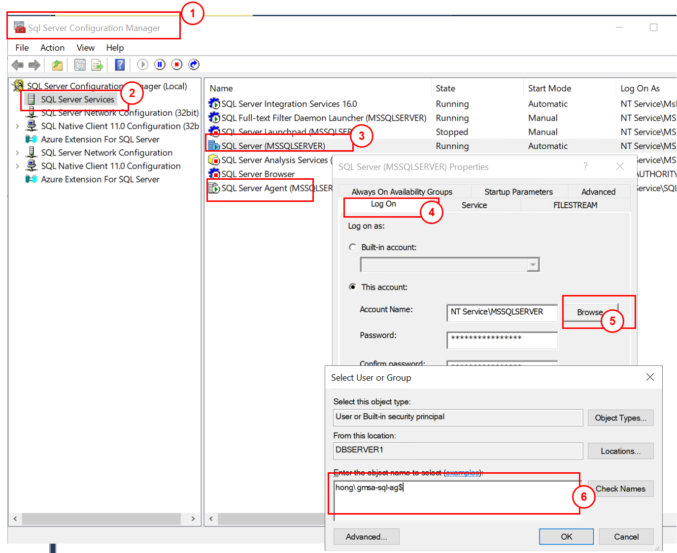 将SQL Server和SQL Server Agent的运行账号更改为gMSA
